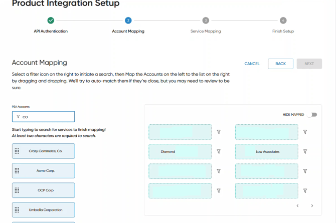- If your account names are the same in your PSA and Barracuda, we will automatically map them for you.